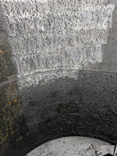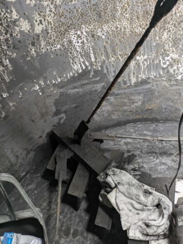 そうなる前にこれ以上の腐食を防ぐため、内面にポリウレア塗装を行います。
