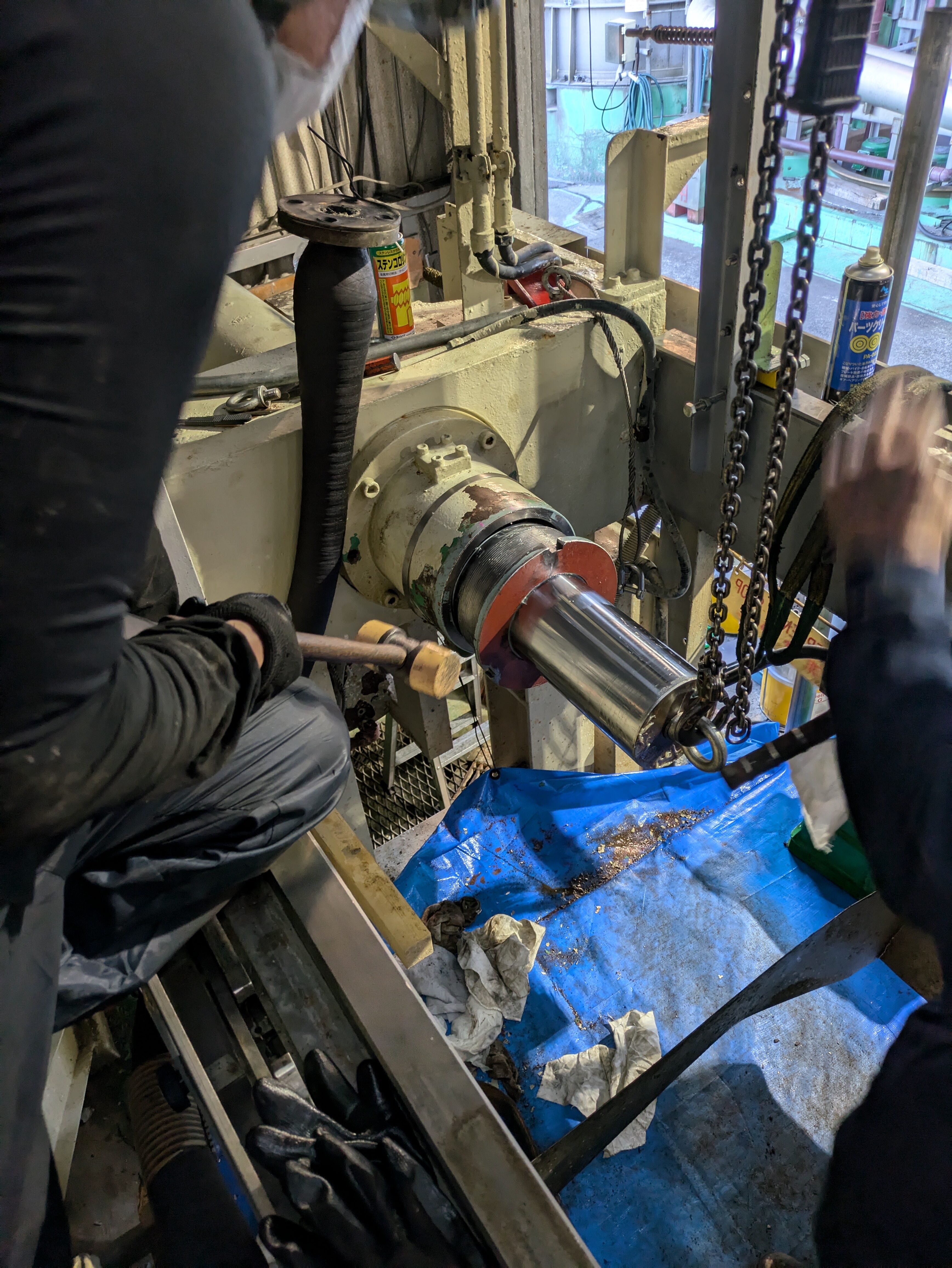 メンテナンスと言ってもフィルタープレスのシリンダーのOリング・パッキンの交換作業