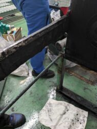 今日は排水処理設備で使用している、脱水機(フィルタープレス)のサイドバーとファーストヘッドを交換しました。